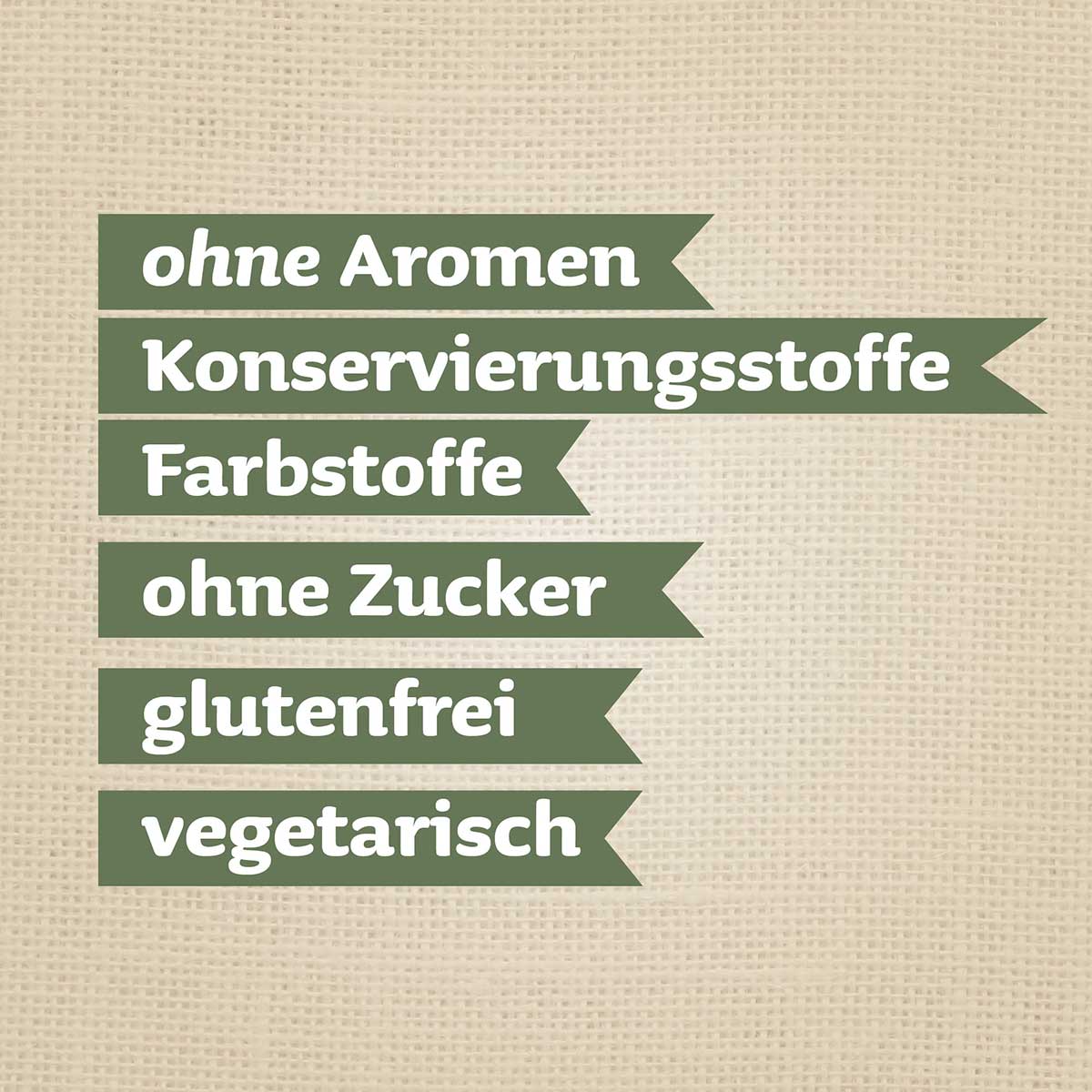 Natürlich frei von Farbstoffen, Lockstoffen, Zucker oder Konservierungsstoffen