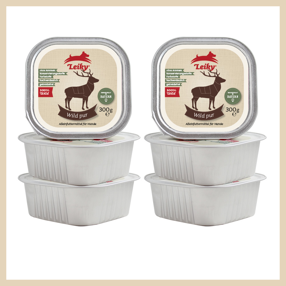 Nehmen Sie das Nassfutter als Fleischanteil zu ca. 70% und fügen dann selbst individuell nach Bedarf des Hundes ca. 30% Gemüse/ Kohlenhydrate/Kräuter und einen Schuss hochwertiges Speiseöl dazu. So bringen Sie Abwechslung in den Speiseplan Ihres Hundes und können sicher sein, dass keine unnötigen Füllstoffe ins Futter kommen. Hat Ihr Hund Magen-Darm-Probleme ist z.B. Leiky Nassfutter mit Schonkostbrei das Richtige. Muss er eher abnehmen, kann der Gemüseanteil erhöht werden. Ideal auch für selbst zusammengestellte Diäten – für die individuellen Bedürfnisse des einzelnes Hundes.So lassen sich jeden Tag unkompliziert und schnell abwechslungsreiche und gesunde Menüs zusammenstellen.