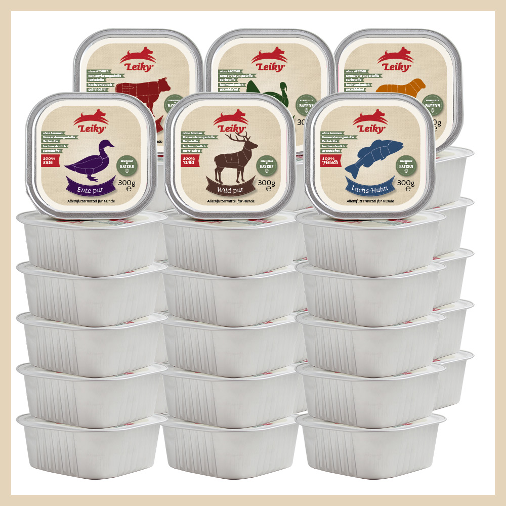 Unser Tipp: Ergänzen Sie Leiky Nassfutter mit den Leiky Breis , Gemüse & Kräutern oder hochwertigen Ölen.