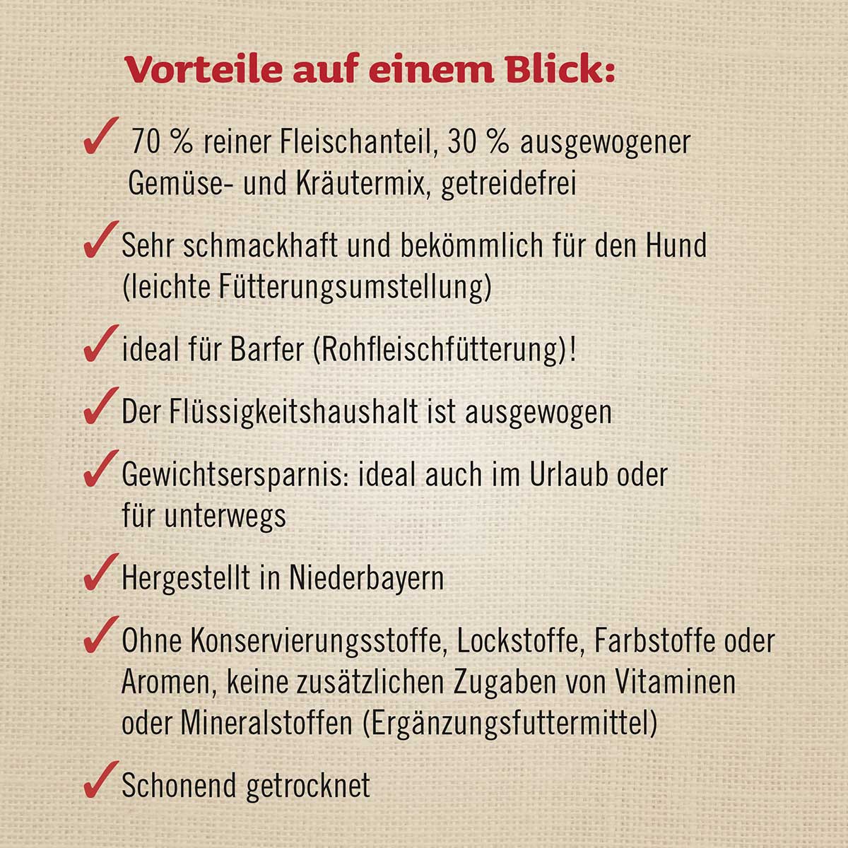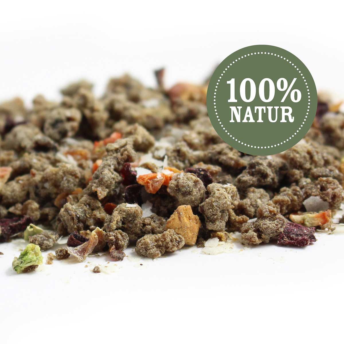 Barf to Go – 70% luftgetrocknetes Freiland-Lammfleisch und 30% getrocknetes Gemüse, wertvoller Leinkuchen und Kräuter
