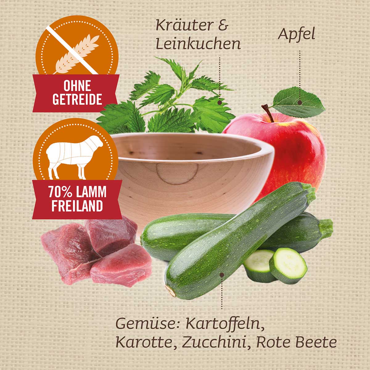 Zusammensetzung: 70% luftgetrocknetes Lamm-Fleisch,