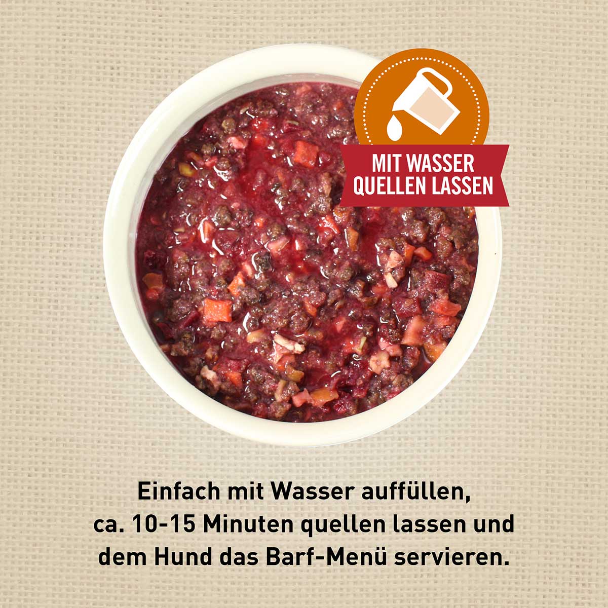 quellen lassen und dem Hund das Barf-Menü servieren.