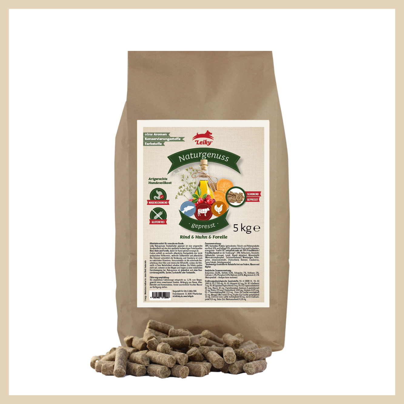 Produktinformationen "Naturgenuss gepresst Rind-Huhn-Forelle, 5kg"