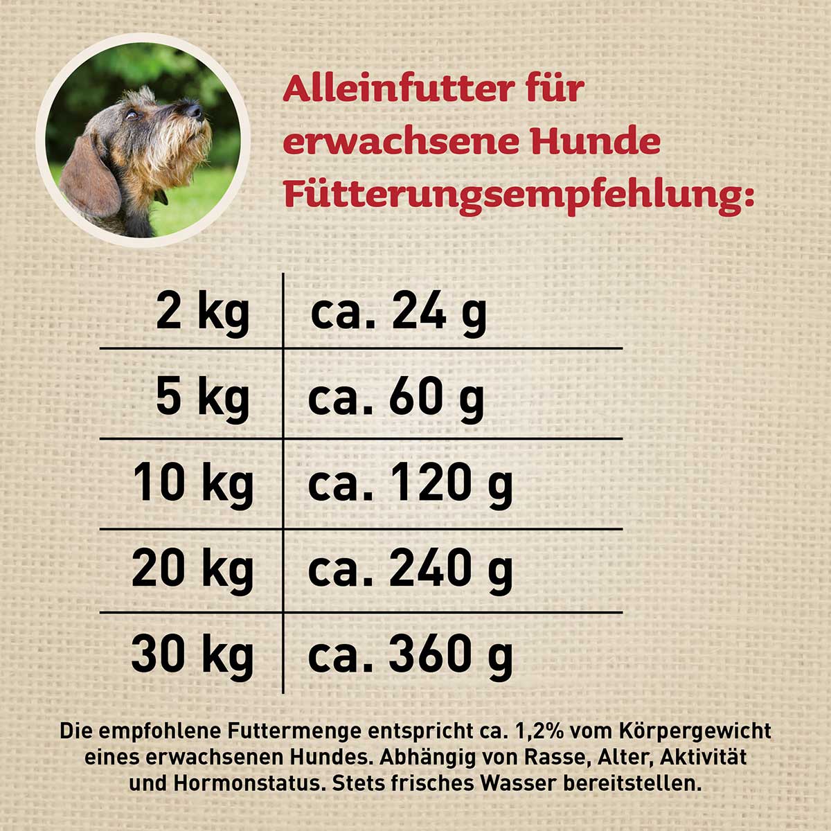 Artgerechte Hundevollkost mit drei hochwertigen Proteinquellen – schonend gepresst.
